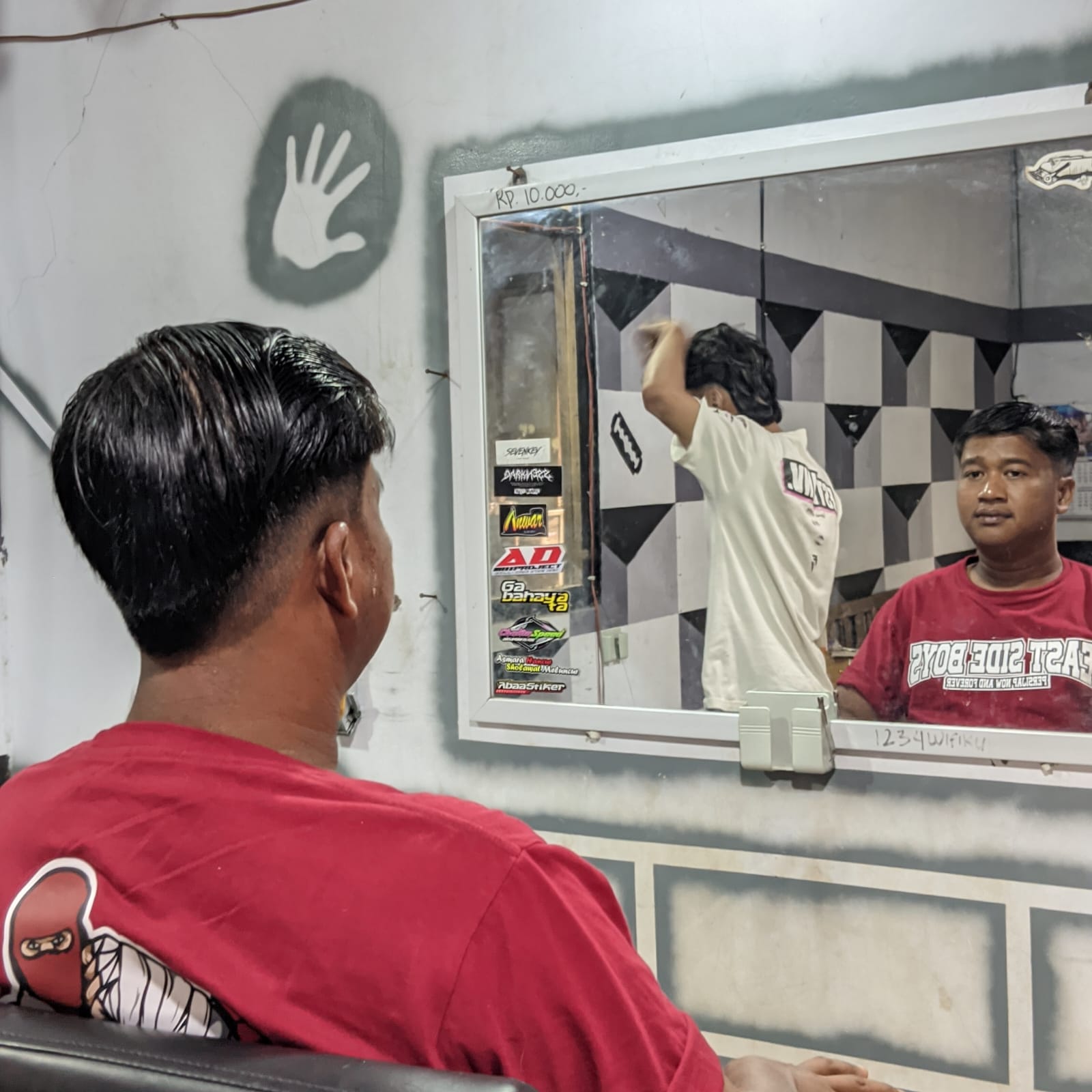 Potongan rambut dengan garis belah tegas di satu sisi kepala, lalu bagian atas disisir ke samping seolah terbagi dua. Bisa dipadukan dengan fade atau taper di bagian samping agar terlihat rapi dan modern.